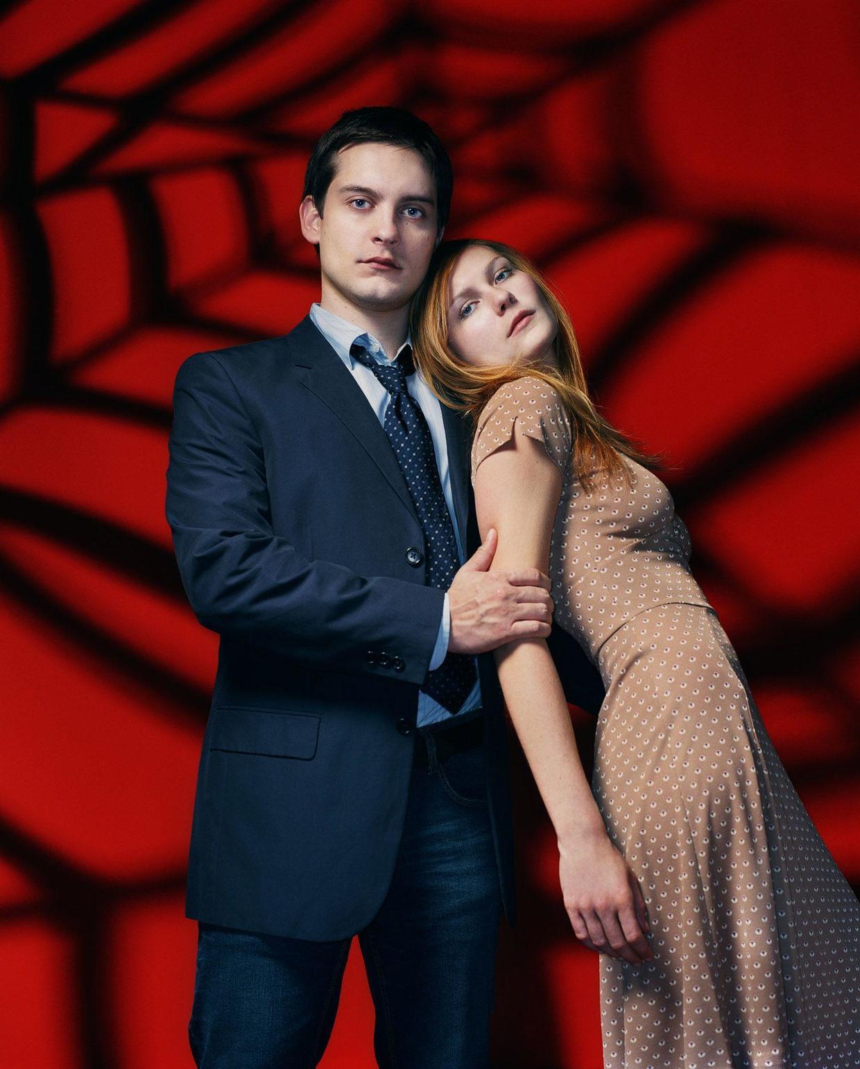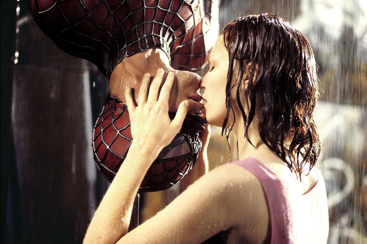 初代的托比马奎尔和克里斯滕邓斯特,倾盆大雨中蜘蛛侠倒吊着和MJ接的那个吻,就是这一对蜘蛛侠CP永恒的经典瞬间。