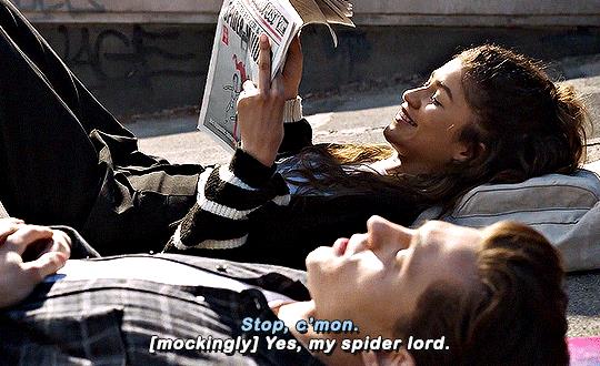 毕竟他们荧幕内外都很般配,电影里一个是话痨少年彼得帕克,一个是怪咖少女MJ。