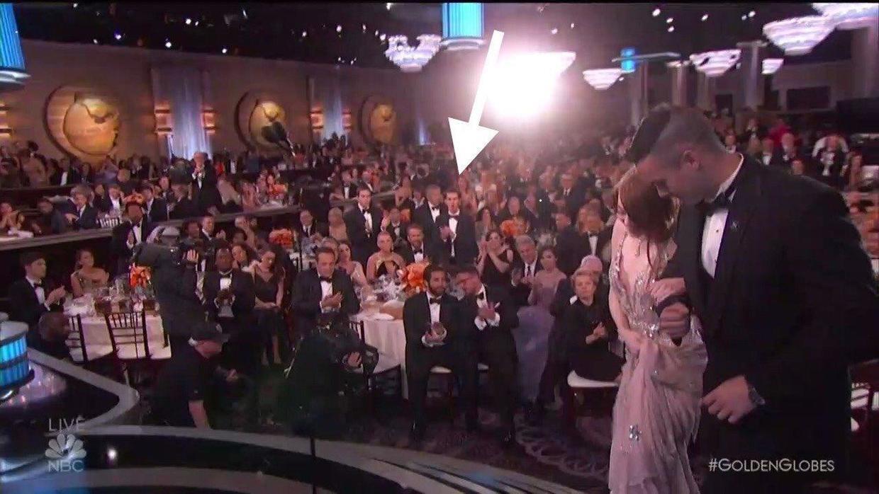 艾玛获得金球奖最佳女演员的时候,加菲起立为她鼓掌。