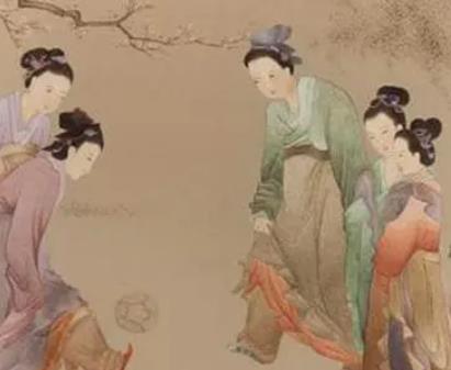 而明末《美人踢球》诗:“蹴鞠当场二月天,仙风吹下两婵娟”。两位富家女子在春风送暖的二月天里踢球玩耍,缠足小脚跑几个来回累得连话也说不出来。
