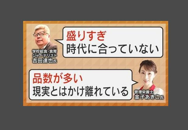 就连专门负责学校给食和食品教育的记者吉田达也也忍不住跳出来说," 这也太丰富了,根本与这个时代不符 "。