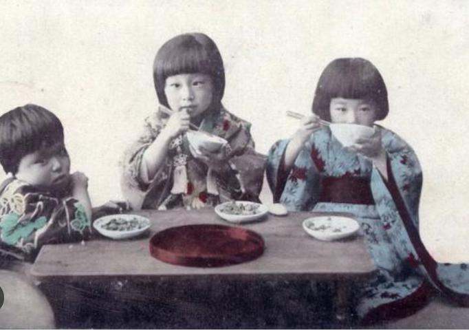 大正时期(1912 年 ~1926 年)学校的午餐是五色饭和味增汤。