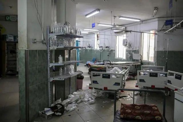 当地时间 2024 年 5 月 7 日,加沙地带拉法,以色列军队宣布控制了拉法口岸巴勒斯坦一侧后,图为巴勒斯坦人撤离后的纳贾尔医院。