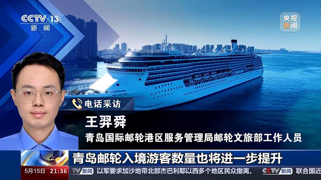 青岛国际邮轮港区服务管理局邮轮文旅部工作人员 王羿舜:新政实施以后,更多的邮轮可以选择直接访问青岛,在青岛的停留时间也更多更长,青岛邮轮入境游客数量也将进一步提升,对于青岛发展访问港邮轮和入境游旅游业务提供了极大的便利。