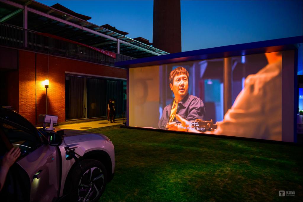 通过变焦镜头,产品可以在更短距离内投射出更大屏幕(图片来源:钛媒体 APP 作者拍摄)