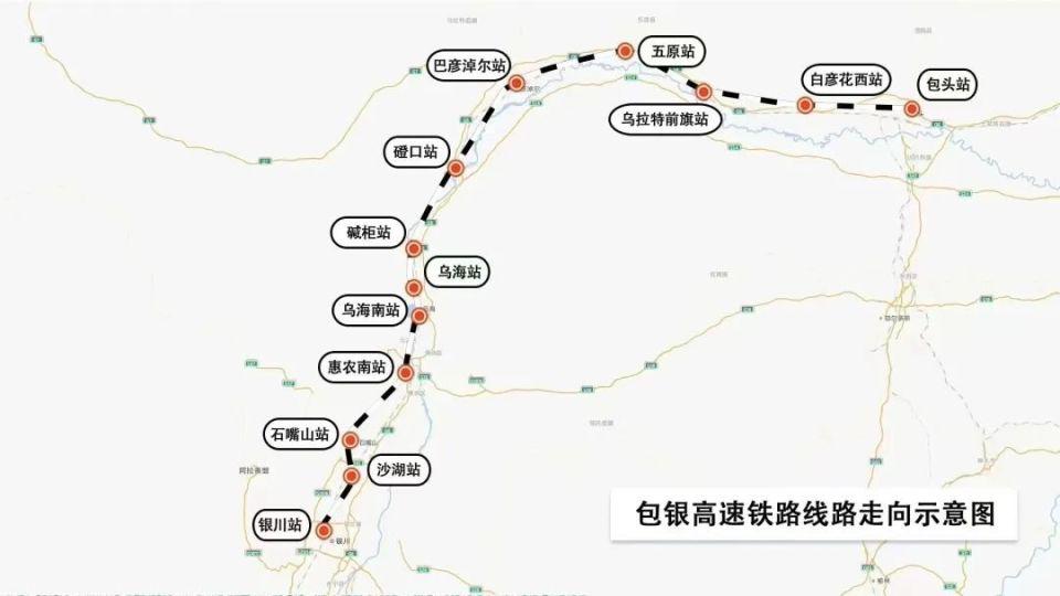 线路起自包头站,经内蒙古自治区包头市、巴彦淖尔市、鄂尔多斯市、乌海市,宁夏回族自治区石嘴山市、银川市,接入银川站。正线全长约 517 公里,设计时速 250 公里。