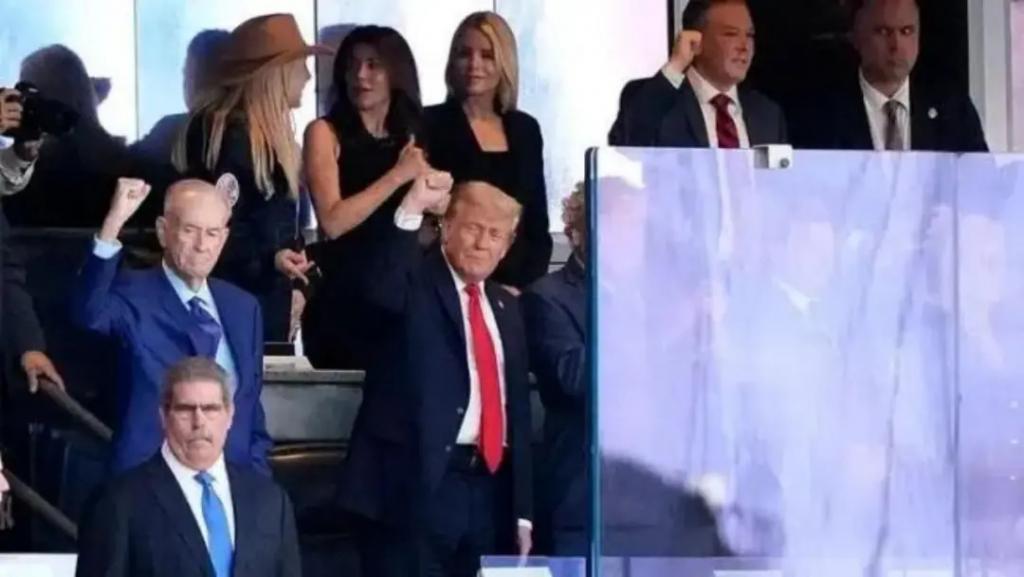 特朗普在防弹玻璃后看球