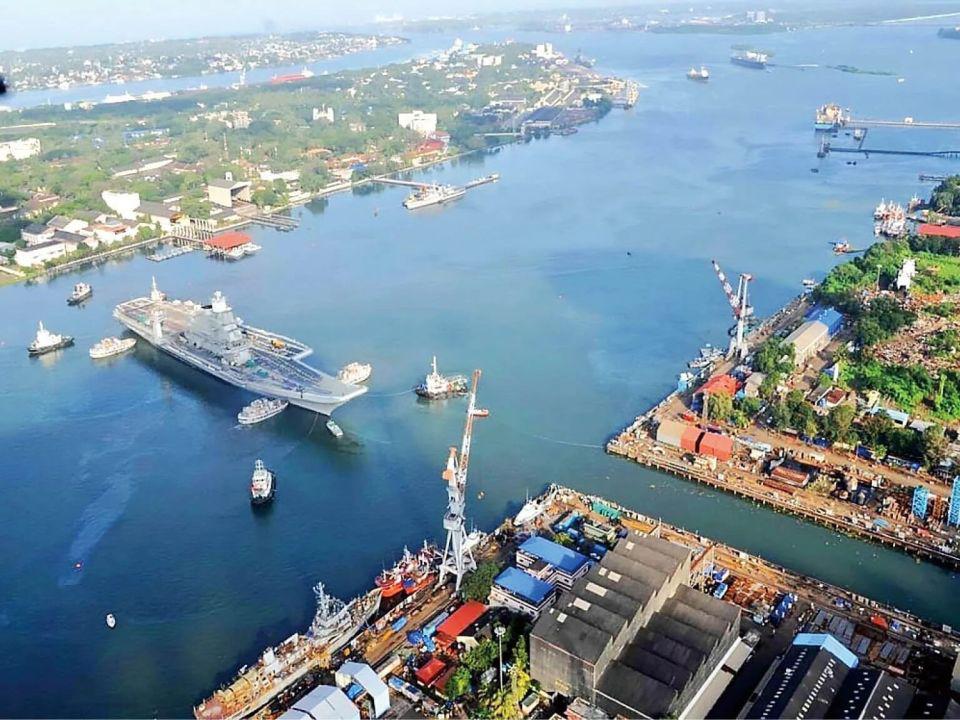 进入科钦造船厂维护升级的印度海军维克拉玛蒂亚号航母。