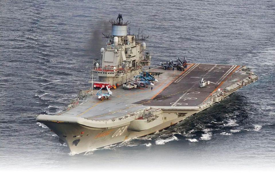 俄罗斯唯一现役航母 " 库兹涅佐夫海军上将 " 号多年前巡弋之姿。