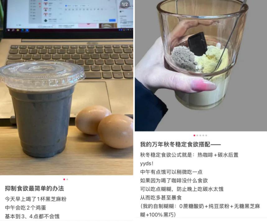 浓缩豆浆、无糖黑芝麻糊、玉米须茶、可可粉等老式冲泡饮品,都以打辅助和平替的形式,成为新时代的 " 稳定食欲 + 防暴食两件套 "。冲泡类饮品从未真正消失,而是换了个形式,对应到更适合白领年轻人的应用场景中。并以一种曲折的形式回归,在减肥液断的需求下再次复活。