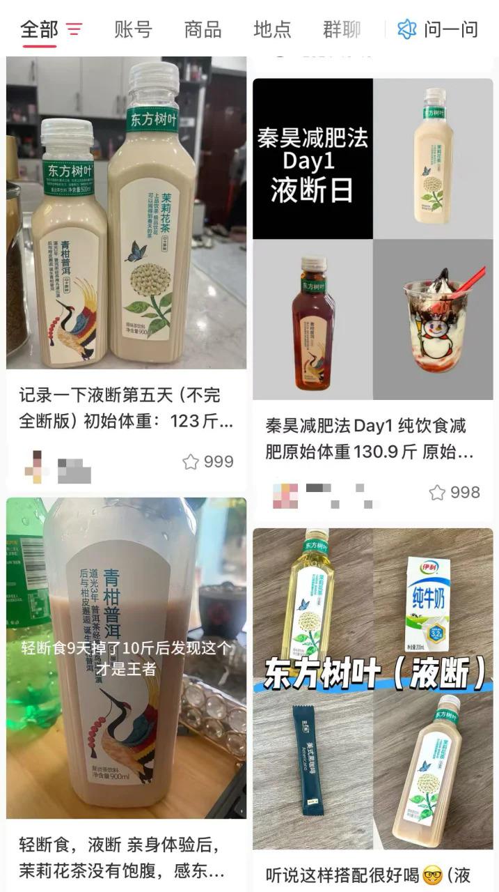 但小红书有关 " 东方树叶液断 " 的海量笔记,的确已经能让人注意到一定的消费风向。