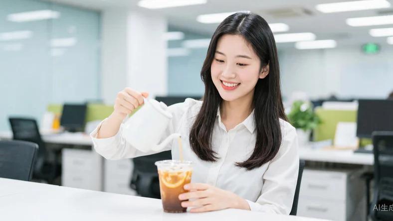 解锁了 " 东方树叶液断大法 " 后,她会在肚子有明显发空的时候,掏出一瓶青柑普洱,兑上一条浓缩柠檬水,在办公桌前 " 现摇奶茶 "。