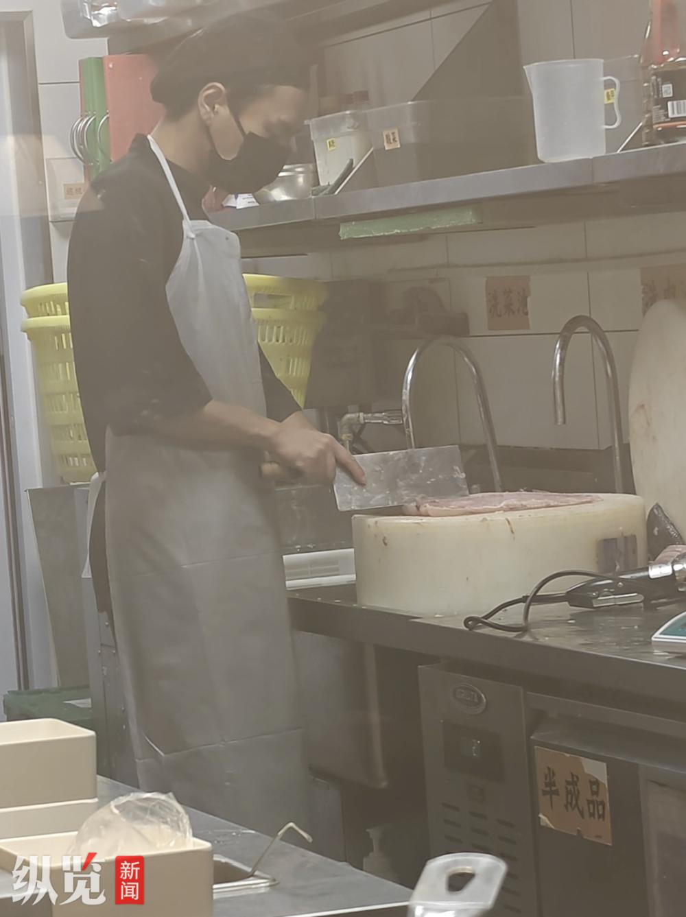 9 月 15 日,记者探访太二酸菜鱼(石家庄万象城店),厨师正在处理鱼肉。(张恩博 / 摄)