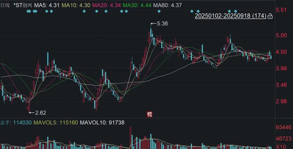 二级市场上,截至 9 月 18 日收盘,*ST 创兴下跌 2.28% 报 4.28 元 / 股,最新市值 18.21 亿元,今年来公司股价累计上涨约 26%。