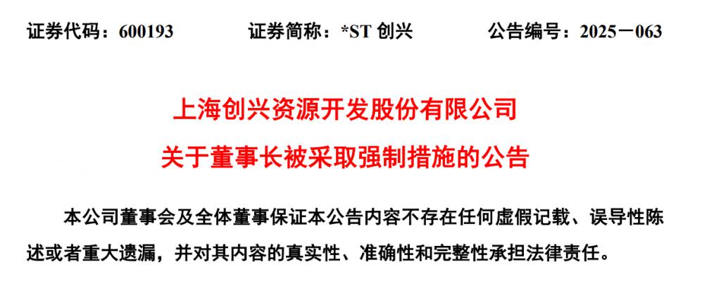 9 月 18 日盘后,*ST 创兴公告称公司于当日收到董事长刘鹏家属通知,其收到杭州市公安局上城区分局的拘留通知,刘鹏正在公安机关配合调查,其接受调查事项与上市公司无关。