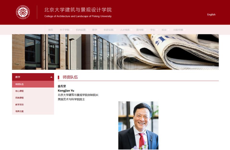 俞孔坚教学经验丰富,教学效果显著,据北京大学建筑与景观设计学院官网消息,俞孔坚为北京大学建筑与景观学院创始院长、美国艺术与科学院院士。1987 年获北京林业大学园林专业硕士学位,1995 年获哈佛大学设计学博士学位,1997 年回国后先后创办了北京大学建筑与景观设计学院并担任首任院长,创办了国际获奖期刊《景观设计学》并任主编,并创办了国家甲级设计机构土人设计 Turenscape。