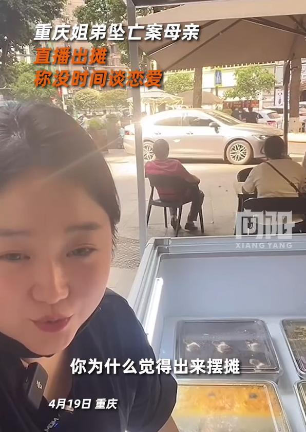 4 月 19 日," 重庆姐弟坠亡案 " 孩子生母陈美霖直播出摊售卖甜品。