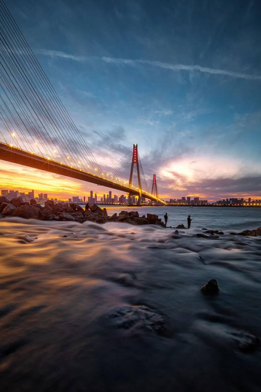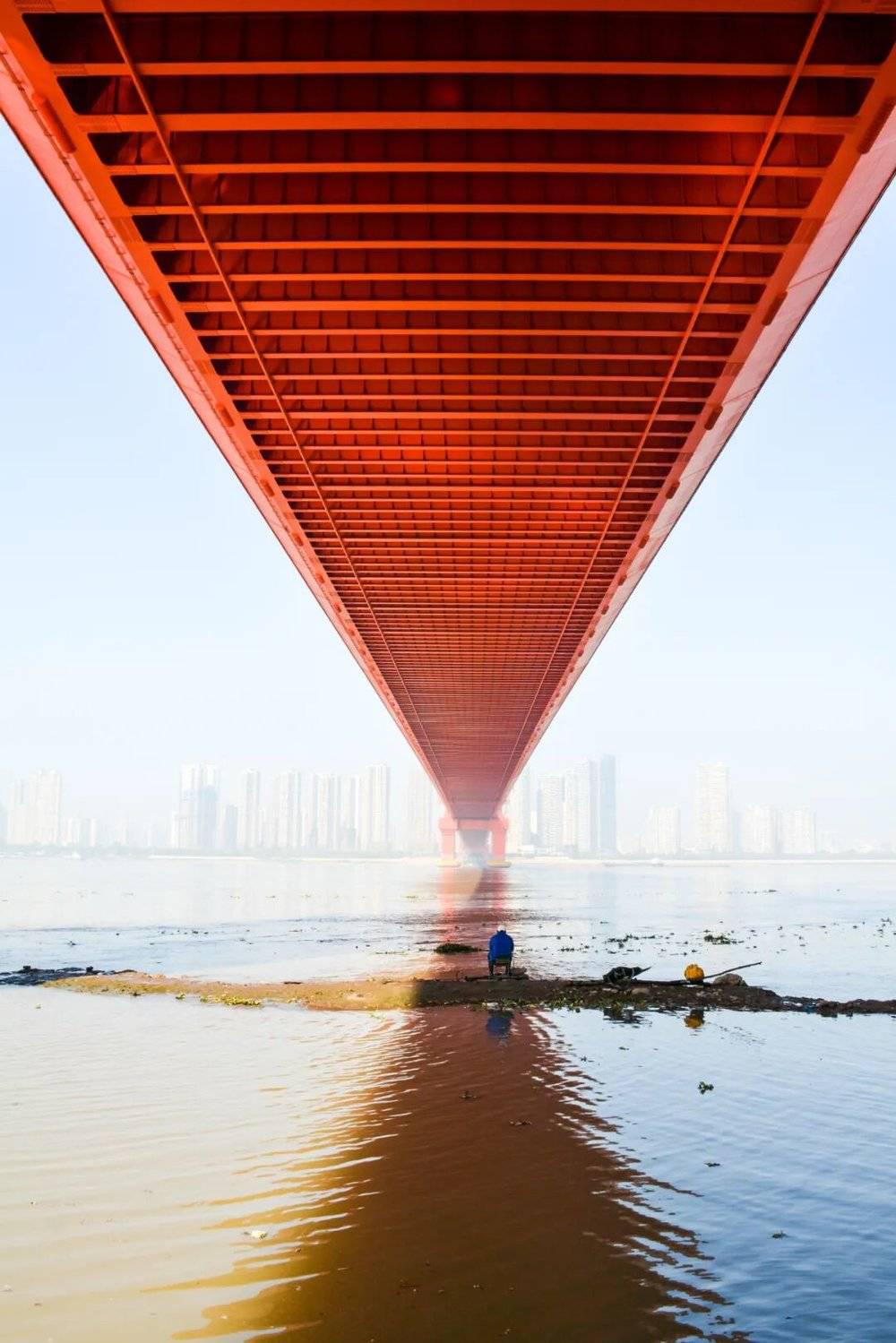 武汉鹦鹉洲大桥下的钓鱼者。摄影 / 温伟栋