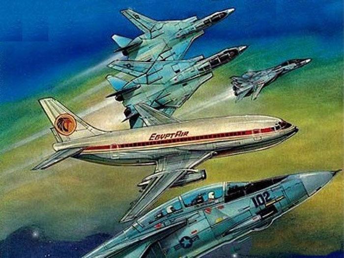很快,两架 E-2C 升空,当其中一架 E-2C 发现这架正飞往突尼斯的客机后,E-2C 便引导 2 架 F-14A 拦截,后者保持无线电静默,只使用数据链与 E-2C 联络。