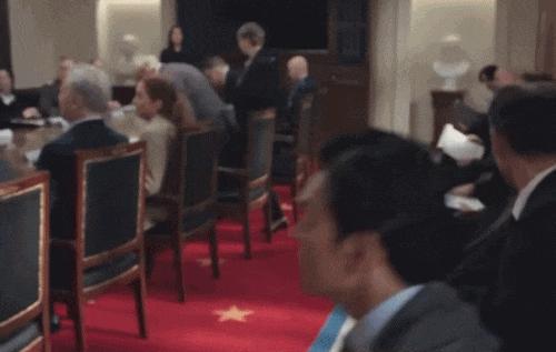 虽然制作经费有 700 亿韩元,但剧组显然容不下一个中文老师。剧中不仅莫名出现了全智贤用 " 塑料中文 " 背诵李白《将进酒》的桥段,反派角色更是频繁使用蹩脚中文对话。更令人愤慨的是,剧中还出现了带有黄色五角星图案的红地毯,演员坐在上面开会的场景被观众解读为蓄意践踏国旗的象征,其丑化中国文化,强化 " 中国即反派 " 的意图不言自明。