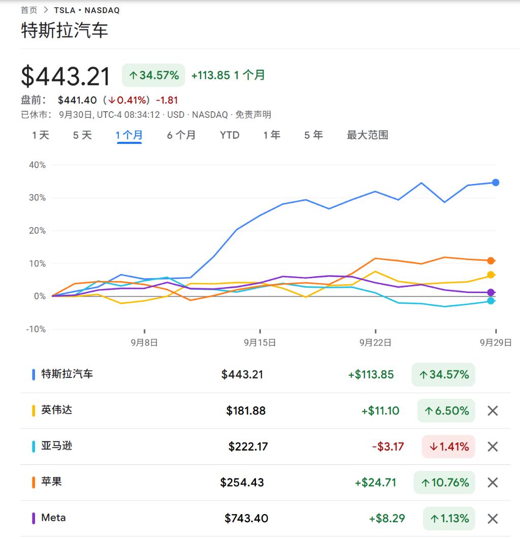然而,进入 9 月后,特斯拉股价强势反弹,成为 " 科技七巨头 " 中表现最佳的股票,迅速缩小了与其他成员的差距。尽管特斯拉年内涨幅仍落后于英伟达、谷歌等,但已成功反超亚马逊和苹果。巴克莱认为,部分资金从其他科技巨头轮动至特斯拉,构成了此轮上涨的另一股力量。