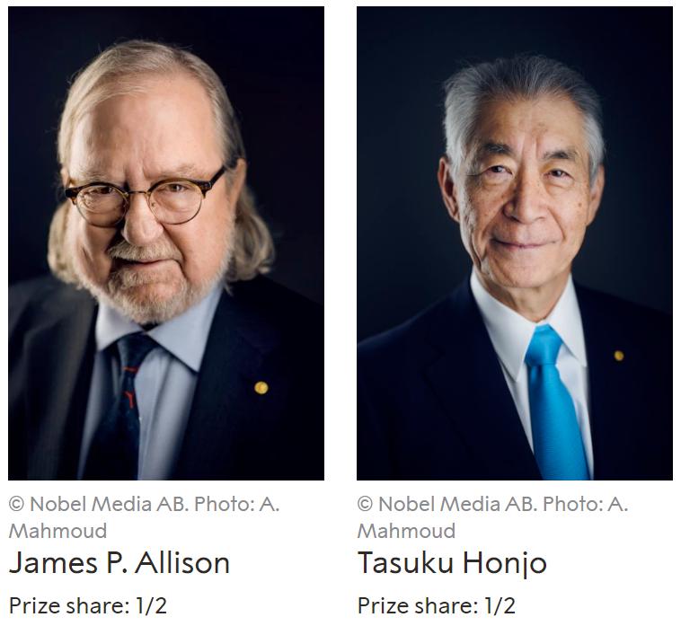 2018 年诺贝尔生理学或医学奖的获奖者是 James P. Allison、本庶佑,他们因发现负性免疫调节治疗癌症的疗法方面的贡献而获奖。