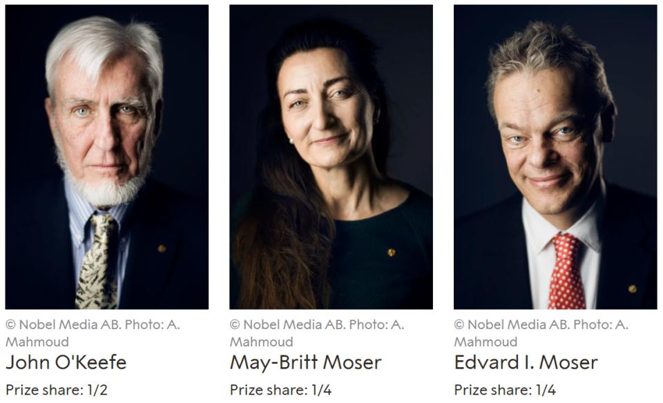 2014 年诺贝尔生理学或医学奖的获奖者是 John O'Keefe、May-Britt Moser、Edvard Moser,他们因发现构成大脑定位系统的细胞而获奖。