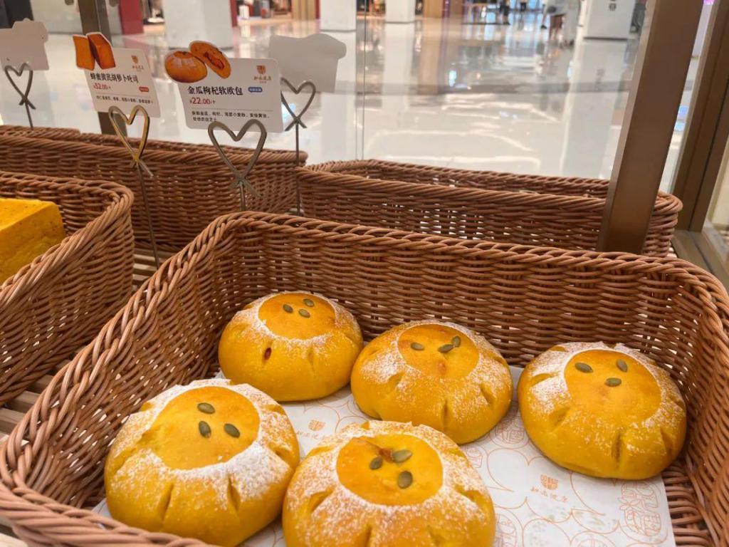 李新 ( 化名 ) 在社交媒体上被种草后,来五棵松万达店买过几次中式面包。就她尝过的金瓜枸杞软欧包、枸杞原浆牛角包来看,吃起来没有明显的中药味,反而是一种不太腻的甜味。