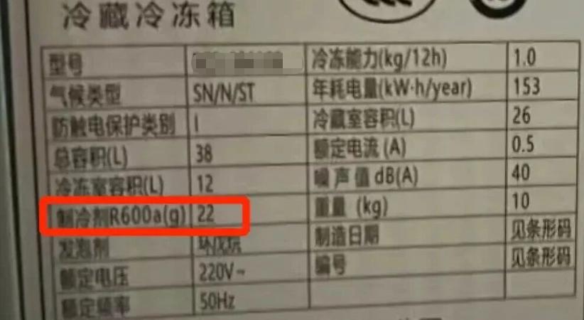 现在很多冰箱里使用的制冷剂是易燃物质,比如常见的有 R600a。可以看一下冰箱背面,上面都会标注制冷剂的类型。