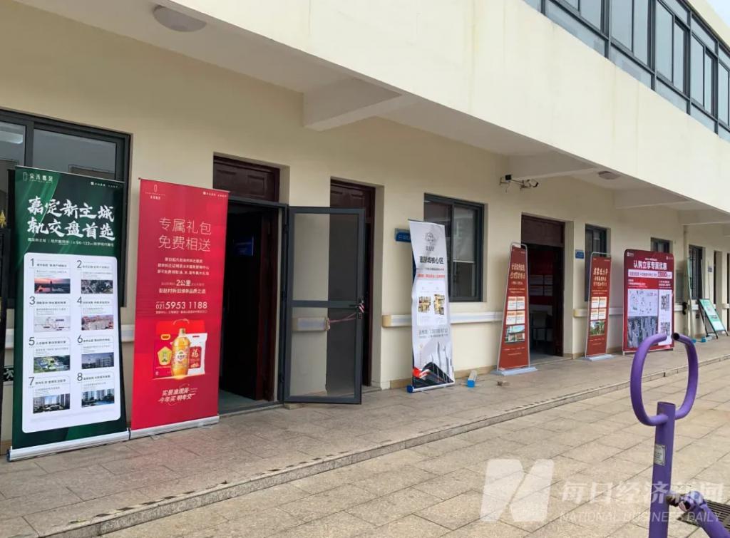 每间办公室门口都竖着易拉宝,展示各自楼盘的优惠措施、效果图、价格等。