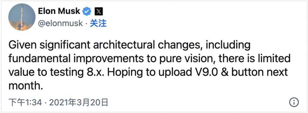 FSD 跳过 V8.x 版本直接发布了 V9.0 版本