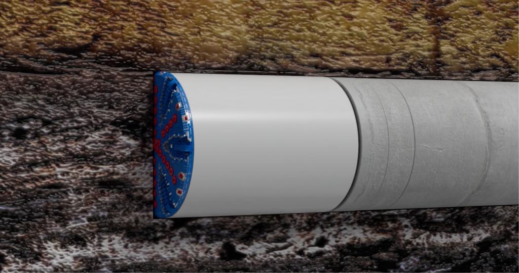 比较明显的区别在于盾构机挖掘的地层较软,需要依靠盾壳和管片来支撑隧道壁。