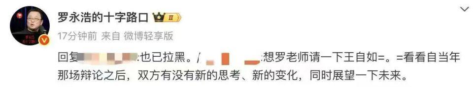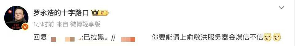 罗永浩先后回复:" 已拉黑 "" 也已拉黑 "。