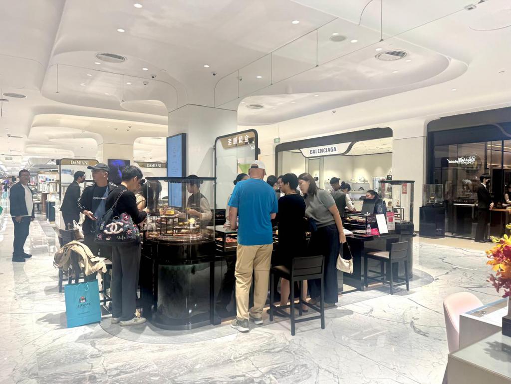 9 月 20 日,北京某商场内消费者正在老铺黄金柜台挑选金饰。新华网记者 闫雨昕 摄