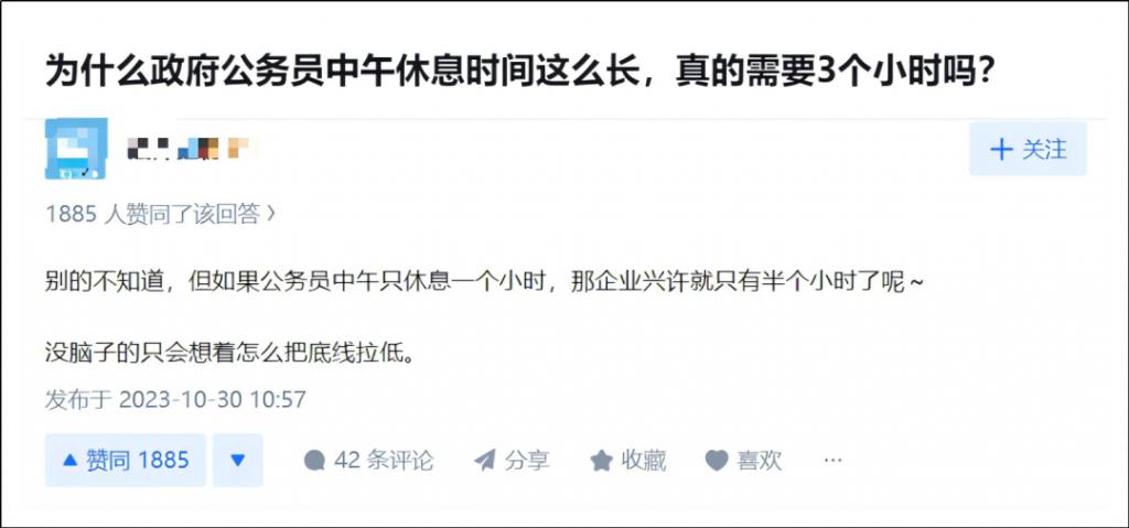 答案是公务员如果只午休一小时的话,企业员工可能连吃饭算上只有半小时了。