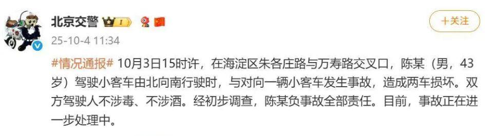 2025 年 10 月 3 日下午,有网友曝出图片,称车评人陈震发生交通事故。北京市交管部门于 10 月 4 日通报,事故双方均未涉酒涉毒,陈某负事故全部责任。