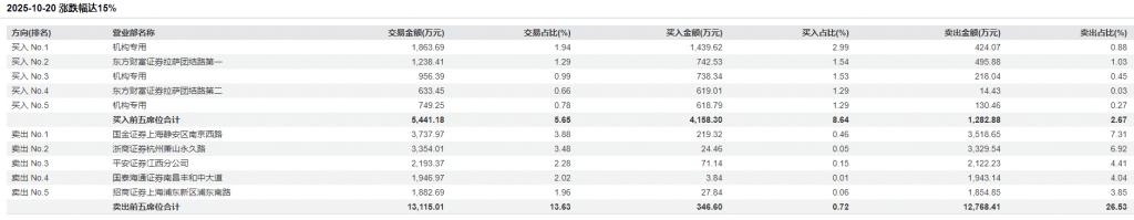 盘后数据显示,当天有 3 个席位大举卖出,卖出额分别为 3518 万元、3329 万元和 2122 万元;买入席位当中出现 3 个机构席位,买入金额分别为 1439 万元、738 万元和 618 万元。