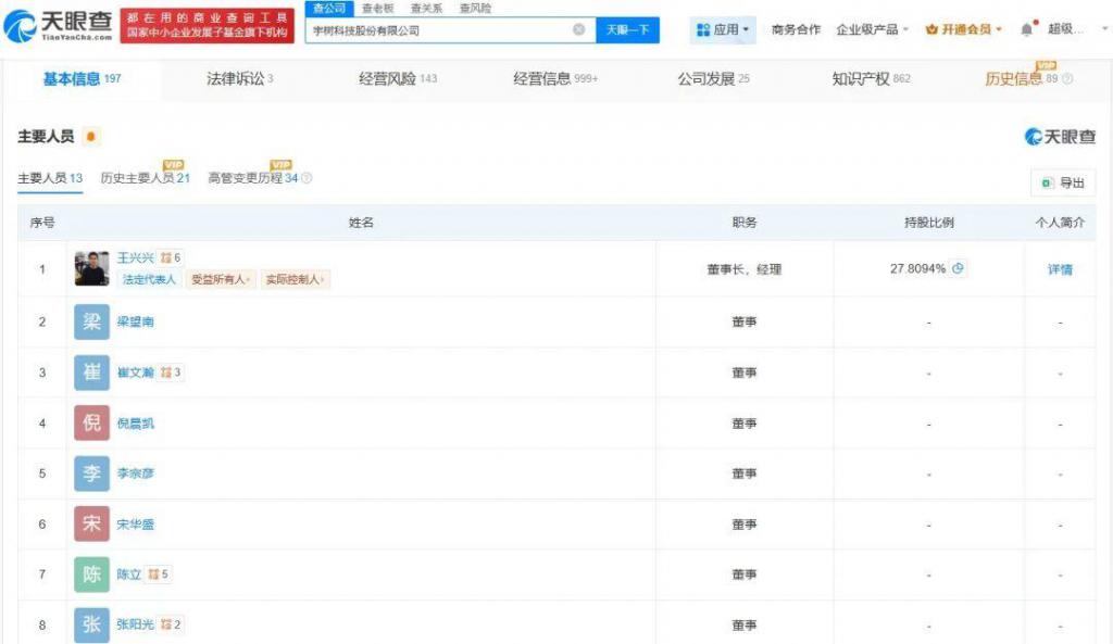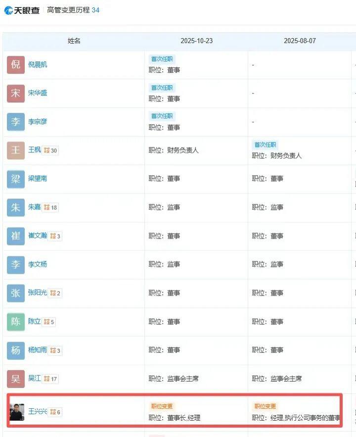 天眼查工商信息显示,10 月 23 日,杭州宇树科技股份有限公司发生工商变更,企业名称变更为宇树科技股份有限公司,同时王兴兴由执行公司事务的董事变更为董事长。