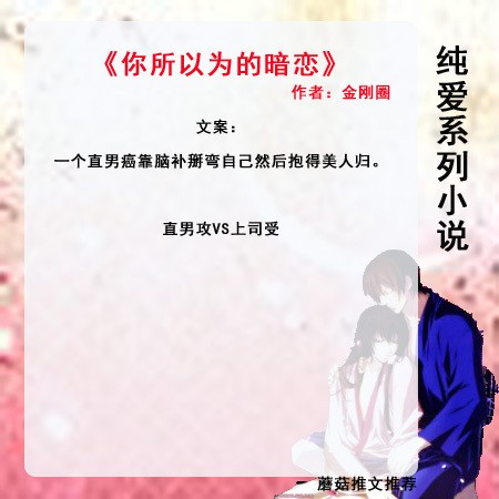 重点:一个直男癌靠脑补掰弯自己然后抱得美人归的故事,攻是个直男,一开始只是和受因为工作关系走得比较近,算是谈得来的朋友,结果后来才听说受是gay,公司里也有关于他们俩的风言风语。为了证明自己攻交了女朋友,可是还是不由自主的关注的受,最后明白自己的心意,死皮赖脸的开始追求受,结局HE.