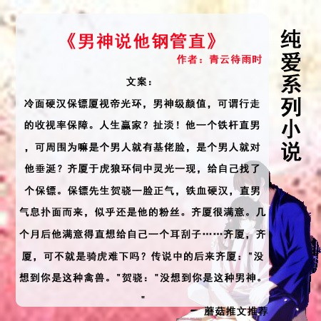 重点:冷面硬汉保镖攻VS男神天然呆视帝受,双商不在线上的明星受忠犬特种兵攻 全文剧情流畅,一个恐同的自认为的钢管直逗比明星和自己的战争兵器特种兵保镖。攻荷尔蒙爆棚,人设很戳人,对外冷酷无情对受则恨不得捧在手心,超甜。