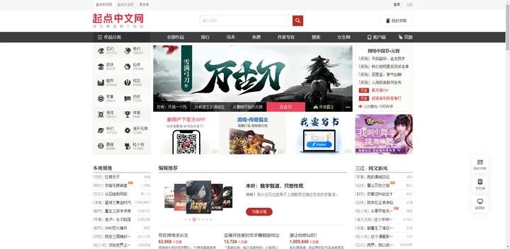 作为国内最大的网络文学平台,拥有海量的原创小说资源,几乎所有想看的小说都能在这里找到,包括玄幻、武侠、都市、现实、悬疑、游戏等类型,在站内也能看到最近畅销的热门小说。