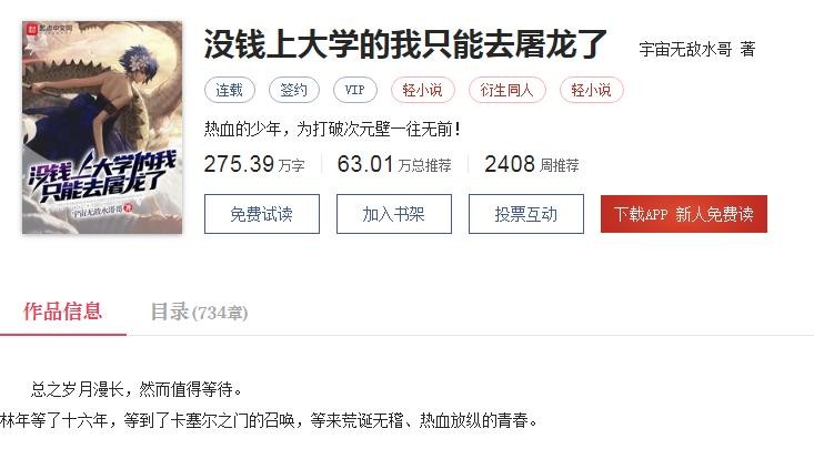 不得不说作者脑洞很大,题材很吸引人,就是恋爱方面写得有点多,感觉有点刻意了,目前剧情进展不快,路明飞刚刚到卡塞尔学院,还不是正式学员。喜欢的朋友可以去看看这部小说。