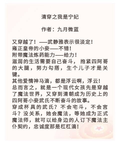 一句话简介:清穿日常。