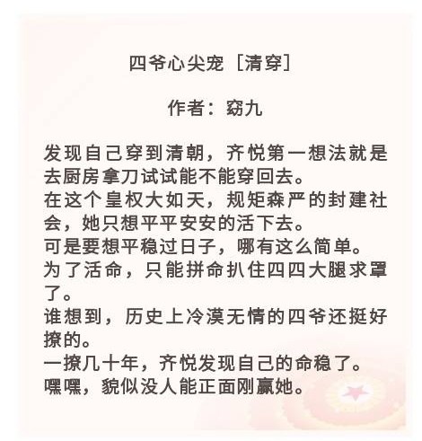 清穿小说|《清穿日常》《四爷心尖宠[清穿]》强推
