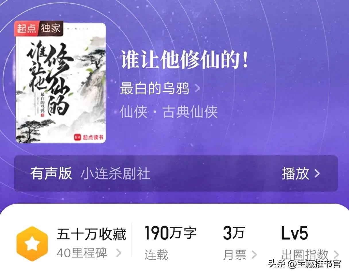 每日一推书,今天我推荐的宝藏作品是《谁让他修仙的!》