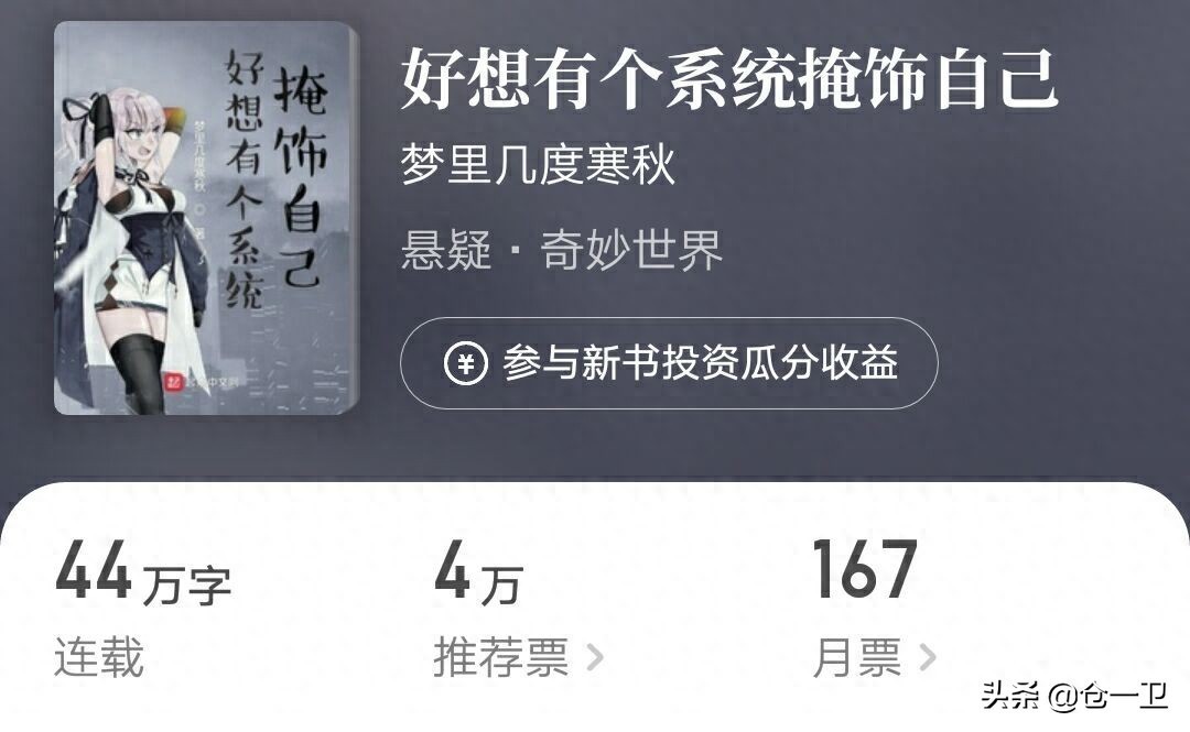 《好想有个系统掩饰自己》,作者:梦里几度寒秋,4级作者。