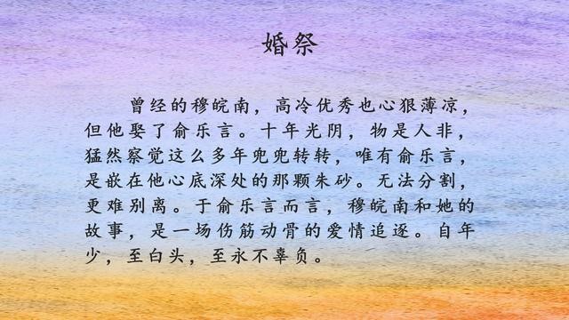 男主穆皖南,女主俞乐言,先婚后爱,外加破镜重圆。