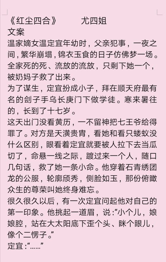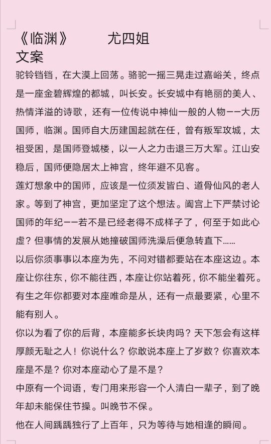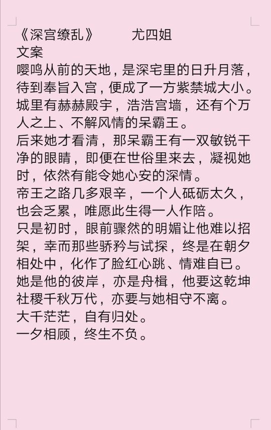 •今天推尤四姐的小说,四姐真的文笔超好!三俗的剧情也能写的不流俗,入坑不亏!文笔真的️可!!❤️❤️