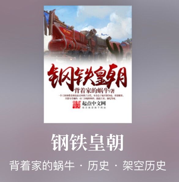 《钢铁皇朝》是一本穿越+黑科技+种田流的小说,蜗牛是老作者了,他精心构建了一个架空世界,让人有种奇特的代入感。