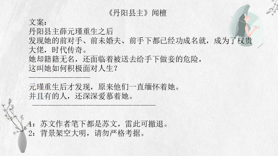 《丹阳县主》现在看到的都是修改过的版本,比原版少了一丝苦情。女主重生,与前世敌人、假弟弟、前手下、青梅间发生的一场情感纠葛。